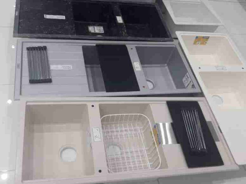 انواع سینک آشپزخانه استیل و گرانیت و کورین و کامپوزیتی و صابونی و مرمر موجود در فروشگاه تجهیزات ساختمانی برادران حیدری سوادکوهی که جنس سینک ها بسیار با دوام و مقاومت بالایی دارد