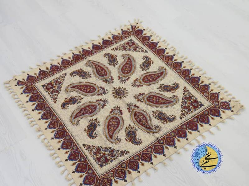 سفره و رومیزی قلمکار طرح بته جقه یک در یک ، قابل شستشو با آب حداکثر ۳۰ درجه با ماشین و دست و با مایع لباسشویی بدون آنزیم در طرح و رنگ متنوع و سایز دلخواه
