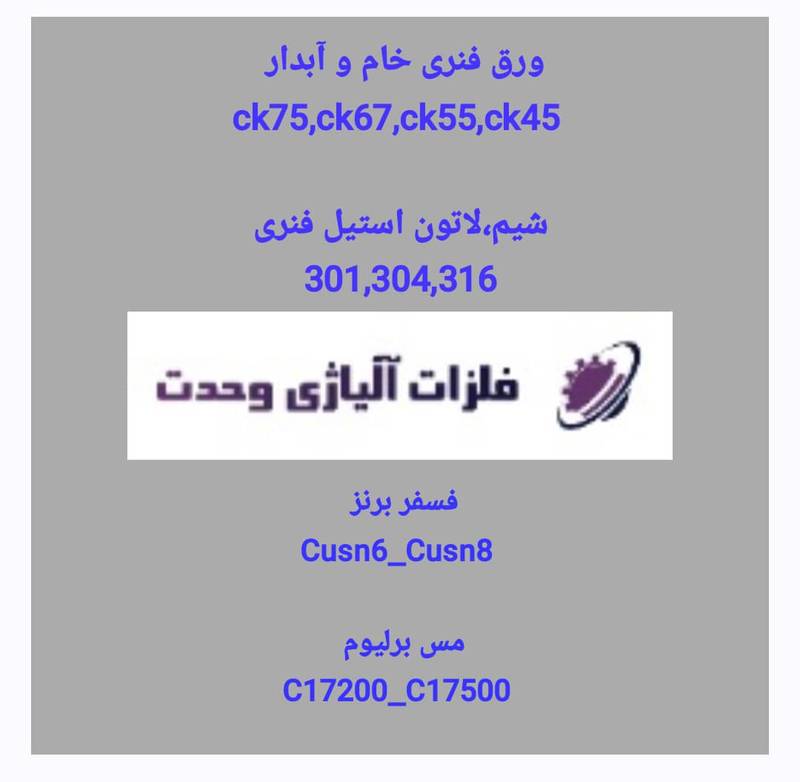 ورق و میلگرد فسفر برنز در مقاطع مختلف