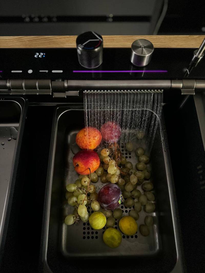رنگ مشکی در کنار طراحی پیانویی با لبههای تیز و صاف، جلوهای بسیار شیک و مینیمال به آشپزخانه میبخشد.