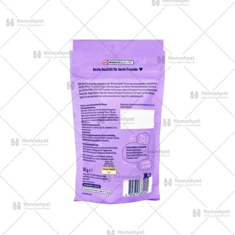 تشویقی Winston Spab Trio محصولی از برند معتبر آلمانی وینستون است که با ترکیب سه طعم متنوع در یک بسته، تجربهای خوشمزه و جذاب برای گربهها فراهم میکند. این محصول بافتی خوشخوراک و دلپذیر دارد و بهگونهای طراحی شده که هم برای میانوعده روزانه و هم به عنوان جایزه در آموزش و تربیت گربه مناسب باشد.به دلیل استفاده از مواد اولیه باکیفیت و پروتئین حیوانی، علاوه بر طعم دلچسب، ارزش غذایی قابل قبولی نیز ارائه میدهد. این تشویقی بدون لاکتوز و بدون افزودنیهای مضر (مانند رنگ و طعمدهنده مصنوعی) تولید شده تا سازگار با دستگاه گوارش گربهها باشد.بسته ۵۰ گرمی آن، انتخابی ایدهآل برای صاحبان گربه است که میخواهند با مقدار مناسب و کنترلشده، هم به سلامت و هم به رضایت حیوان خانگی خود اهمیت دهند.