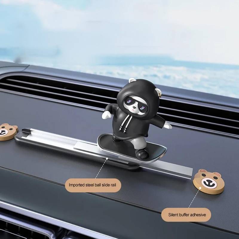 شکل پاندا در حال اسکیت که با جزئیات دقیق طراحی شده، ظاهری شیرین و شادی آور به داشبورد خودرو می دهد.