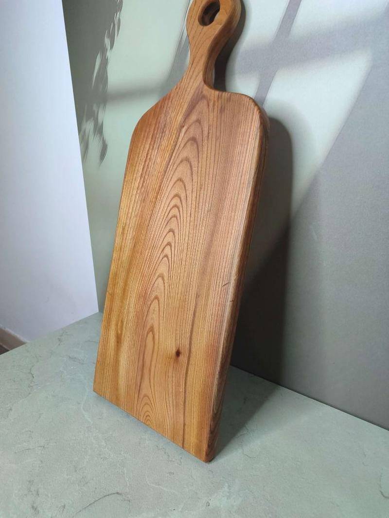 این تخته گوشت دسته دار چوبی از مجموعه صنایع چوبی چومو در گرگان، با دقت و از چوب مرغوب ازدار ساخته شده است. ابعاد آن 70 در 30 در 5 سانتیمتر است و طراحی آن با دسته، کار را برای استفاده آسانتر کرده است.
