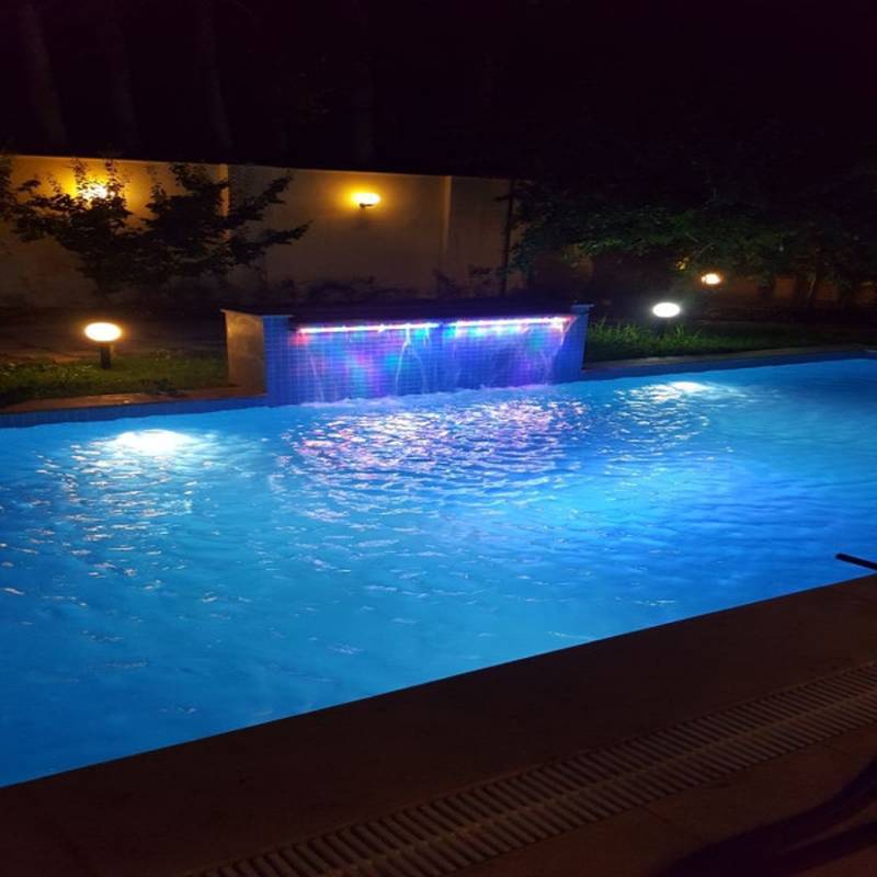 ضخامت کم ( 2 سانتیمتر ) این ضخامت کم در استخر های شنا ایجاد مزاحمت نمیکند ، شدت نور بسیار بالا بدلیل استفاده از LED پاور پر قدرت ، مصرف بسیار پایین ، استفاده از ولتاژ ایمن 12 ولت . ایده آل برای نصب روکار در دیواره های استخرهای شنا ، آبنماها و حوض ها و همچنین استفاده جهت روشنایی برای مکانهایی که رطوبت بالایی دارند مثل استخر و سونای بخار. اتصالات استیل مورد نیاز در بسته بندی موجود است. دقت داشته باشید این چراغ دارای ولتاژ 12 ولت میباشد پک کامل چراغ روکار استخری برای استخرهای تا 50 متر مربع ( ابعاد حدودی : طول 10 متر و عرض 5 متر ) این مجموعه بصورت کامل دارای چراغ ، منبع ، کنترلر و نوار آپارات مورد نیاز برای یک ااستخر بصورت کامل و به شرح زیر میباشد : 4 عدد چراغ استخری روکار فلت 36 وات گرین کیت یک عدد منبع تغذیه سوئیچینگ 30 آمپر ایزوله یک عدد نوار آپارات