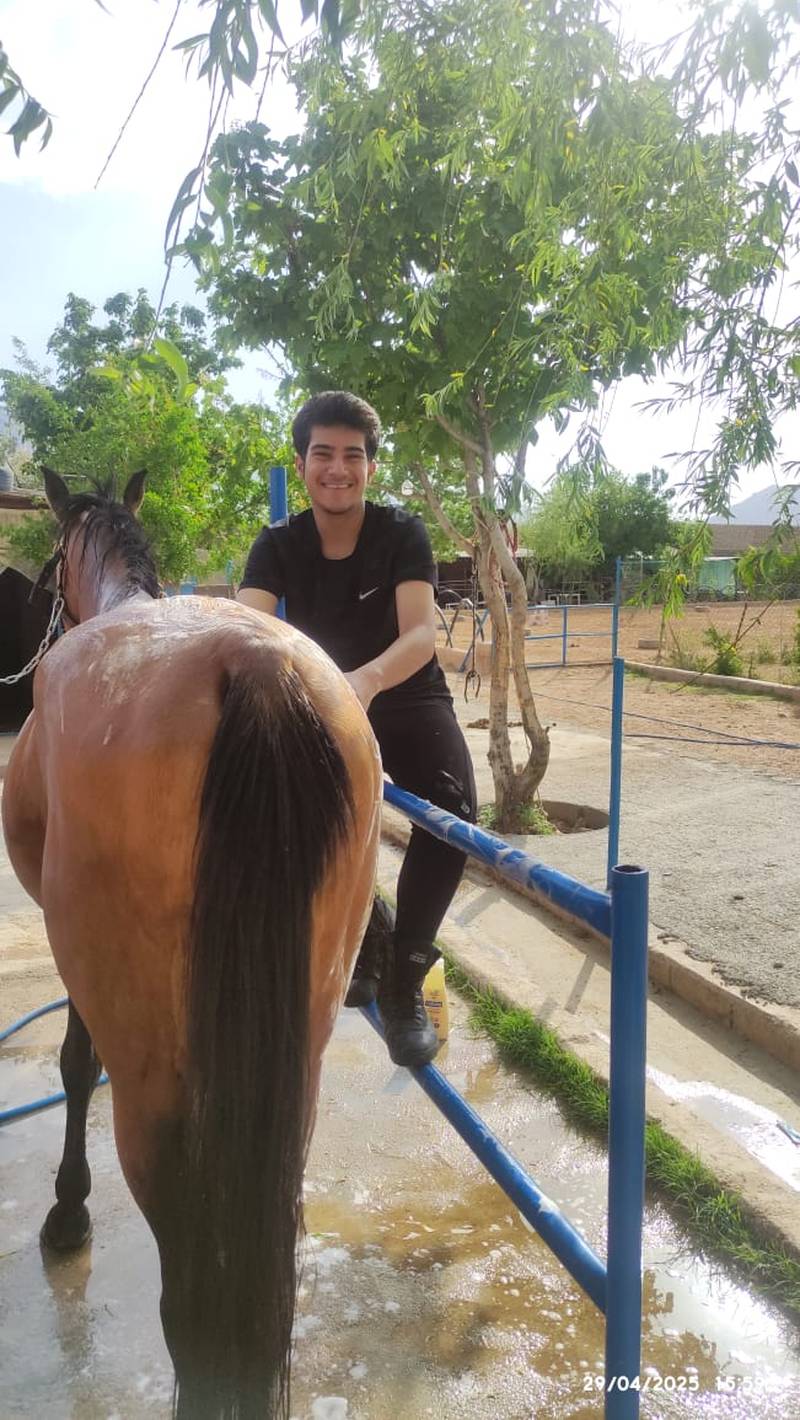 شستشوی اسب در باشگاه سوارکاری در شیراز