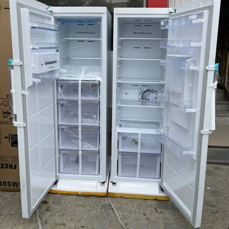 اکنون به معرفی یکی از یخچالهای دوقلوی برند سامسونگ با مشخصات RR39RZ32 میپردازیم این یخچال دوقلو یکی از خوش ساختترین مدلهای شرکت سامسونگ است که دیزاینی بسیار جذاب و دیدنی دارد و بسیار مناسب خانوادههای پرجمعیت و بسیار پرمصرف است. یخچال RR39RZ32 با ظرفیت 40 فوت میتواند مواد غذایی بسیار فراوان را نگهداری کند و دسترسی کاربران را راحت کرده است. با توجه به آنکه مصرف انرژی بسیار پایینی دارد و از بهترین کمپرسور اینورتر بهرهمند میباشد توانسته رتبه انرژی آن +A باشد. یخچال فریزر دوقلوی سامسونگ از دو بخش یخچال و فریزر میباشد که به صورت مجزا کنار یکدیگر قرار داده میشوند لذا مخاطبان میتوانند دورتر از هم آنها را نیز قرار دهند ولی معمولاً کنار یکدیگر قرار میدهند. این مدل یخچال فریزر دوقلو RR39RZ32 دارای قابلیتهای بسیار کاربردی است که میتوان به انجماد سریع فریزر، سیستم جریان هوای چندگانه داخل یخچال و فریزر به همراه فیلتر بهداشتی، جریان هوای خنک کنندگی و تمام اینها اشاره نمود که در ادامه به صورت کامل توضیح داده میشوند. با خرید یخچال دوقلوی سامسونگ از قابلیتهای هوشمند نیز بهرهمند خواهید شد چون به گوشی هوشمند اتصال پیدا میکند و پیشرفتهتر و راحتتر در اختیار مخاطبان قرار میگیرد. طراحی داخلی یخچال و فریزر سامسونگ دوقلو با دیزاین پیشرفته و بسیار منظمی انجام شده است، به صورتی که مرتب میتوان هر نوع ماده غذایی را طبق سلیقه خودتان بچینید و فضای زیادی در اختیارتان قرار دارد. شرکت سامسونگ با در نظر گرفتن سلیقههای متفاوت در دو رنگ سفید و نقرهای مدل یخچال RR39RZ32 را طراحی کرده است که برای کاربران بسیار مفید واقع شده است.