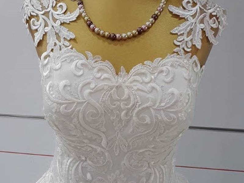 لباس عروس ساتن با طراحی دانتل خام برجسته