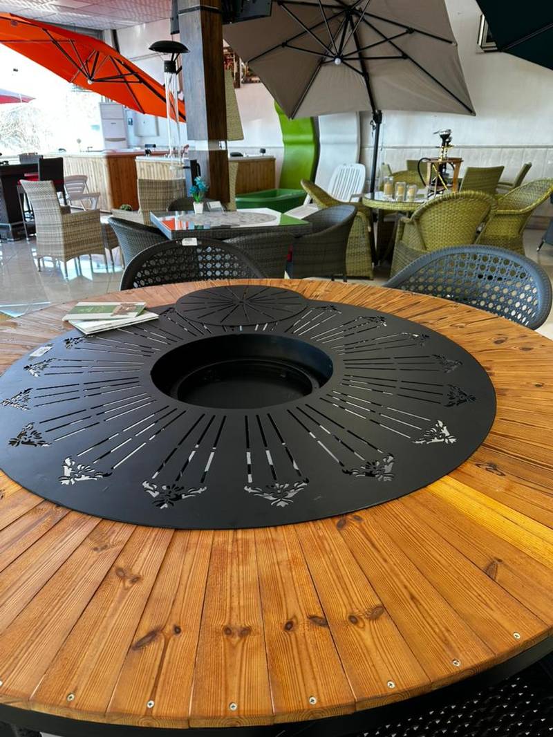 تولید و فروش میز آتشدان با قطر ۱۸۰ سانتیمتر همراه با دورچوب چوب ترمو