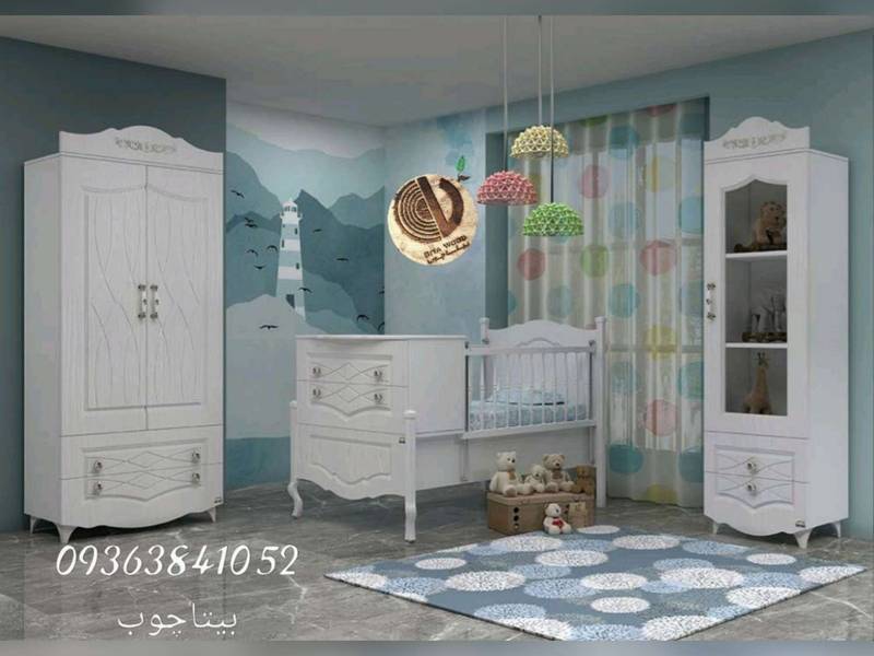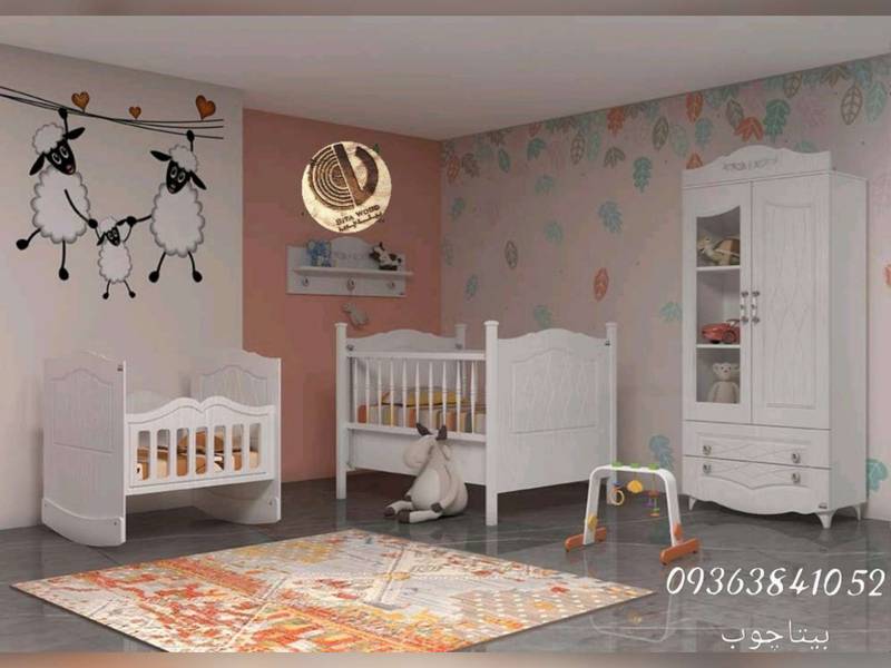تخت خواب کودک دارای نرده آسانسوری برای استفاده راحت تر مادر و فرزند از تخت خواب