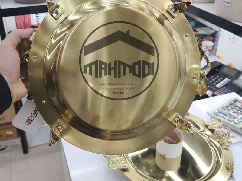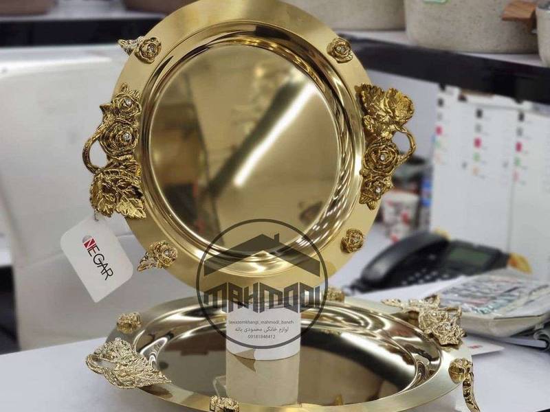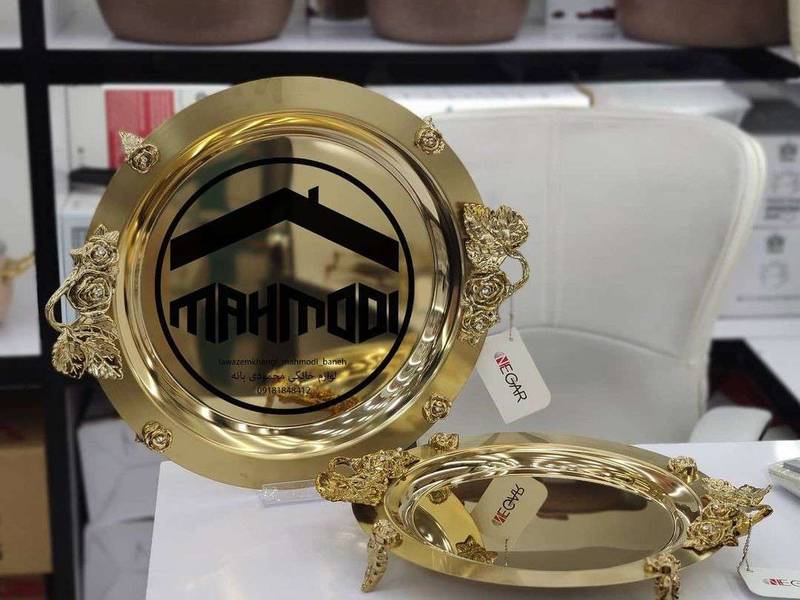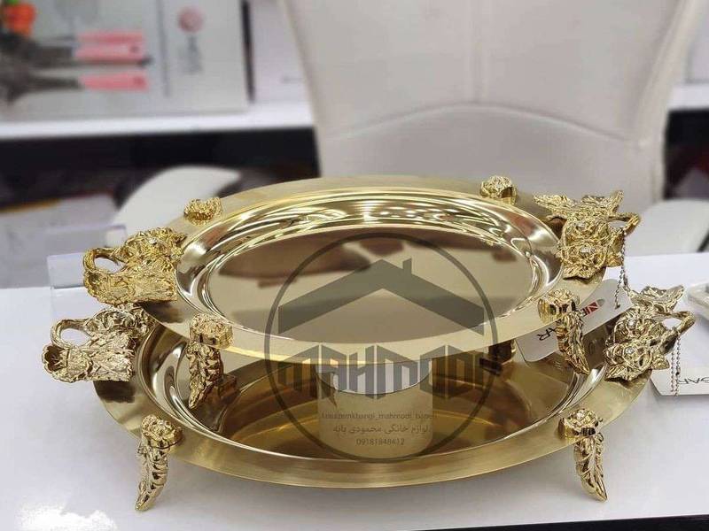 😍سینی طلایی ۲عددی پایه دار گرد😍