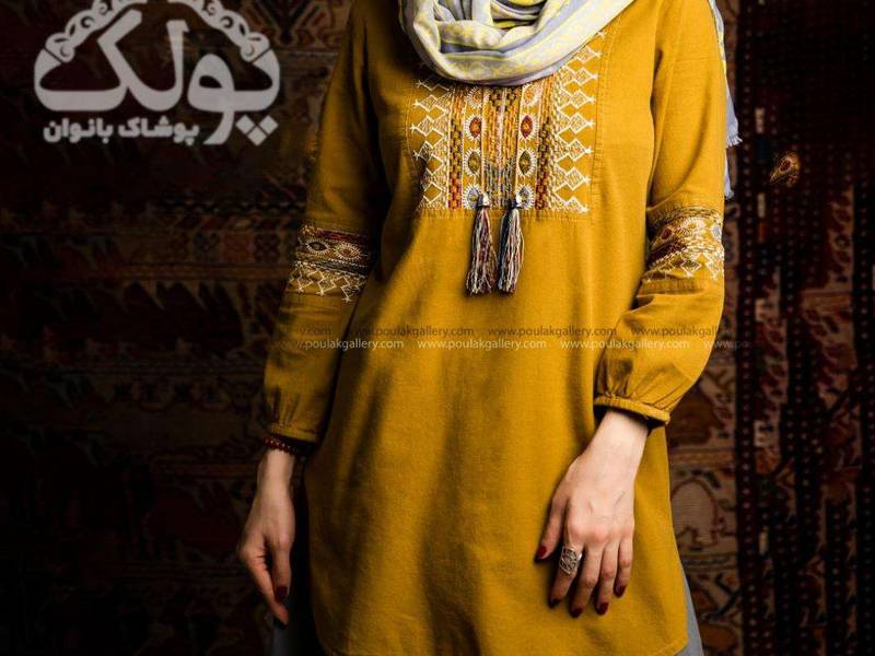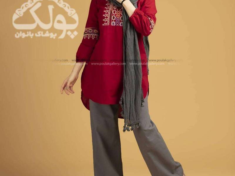 این تن پوش در سه رنگ قرمز، خردلی و سرمه ای با گلدوزی زیبا ارائه شده است.
