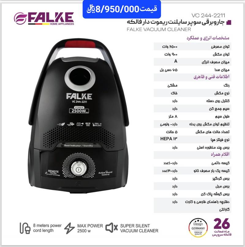 جاروبرقی سوپرسایلنت ریموت دار فالکه