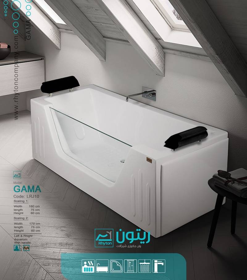 یکی از مدل های شیشه ای (آکواریومی) وان و جکوزی ریتون مدل گاما می باشد. این مدل بصورت وان و جکوزی و با قطعات و تجهیزات درخواستی در ابعاد ذیل قابل ارائه می باشد: