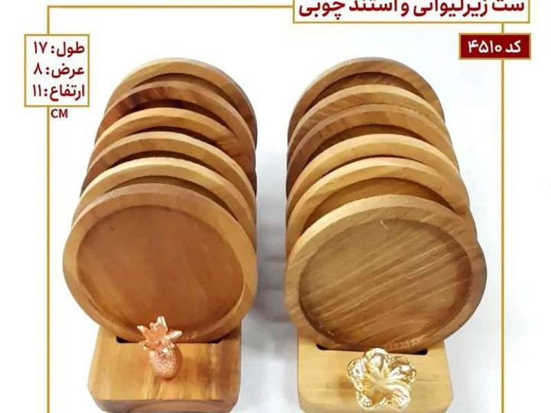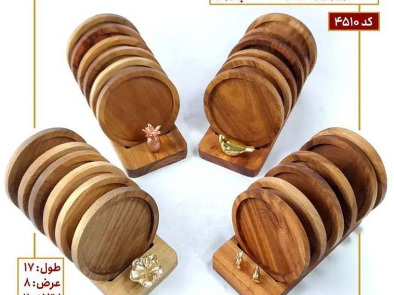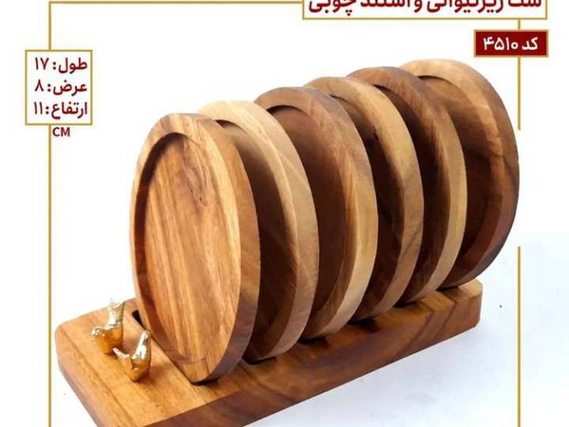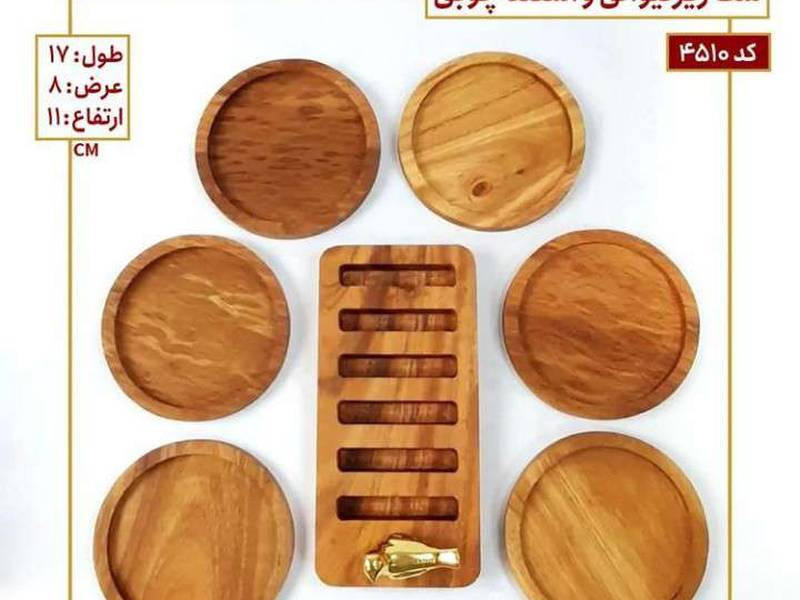 ست شامل6 عدد زیر لیوانی چوبی و یک استند چوبی با اکسسوری فلزی