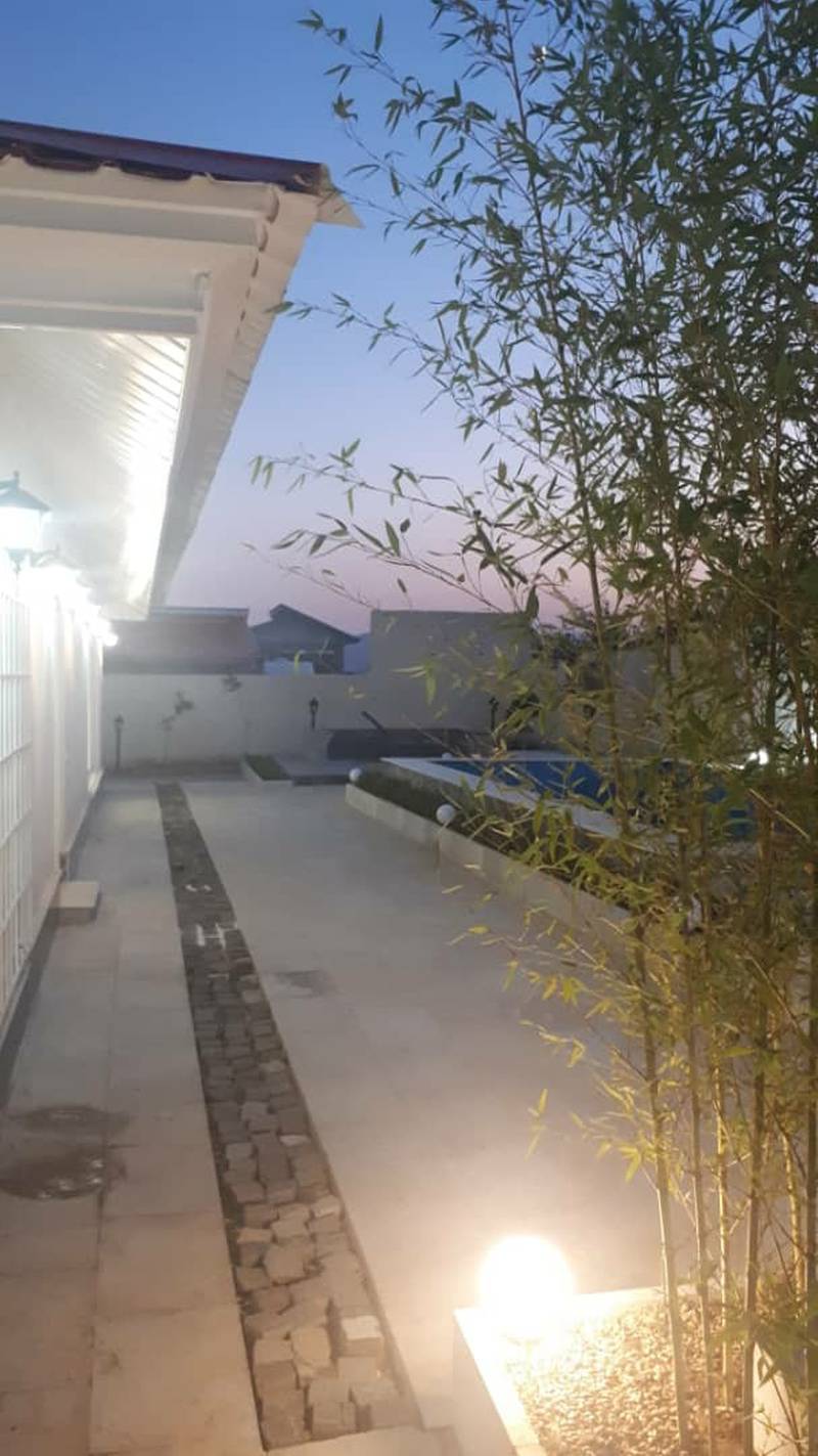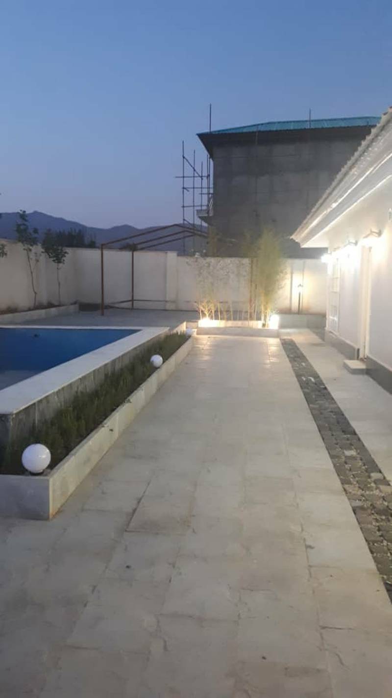 ۲۵۰متر بنا شامل تراس ۶۰متر کاربردی مجهز به آب و برق و گاز ، ۳۰متر سرایداری یا انباری ، ۱۸۰متر ساختمان ۳خوابه مستر ، آشپزخانه جزیره کورین ، فرتوکار . استخر تفریحی و اتاق تاسیسات، آب انبار ۴۰هزار لیتر ، مخزن گاز ال پی جی ، آلاچیق مجهز به آب و برق و گاز ، آتش دان و نیمکت سنگی ، شیشه های سکوریت قدی دو جداره .