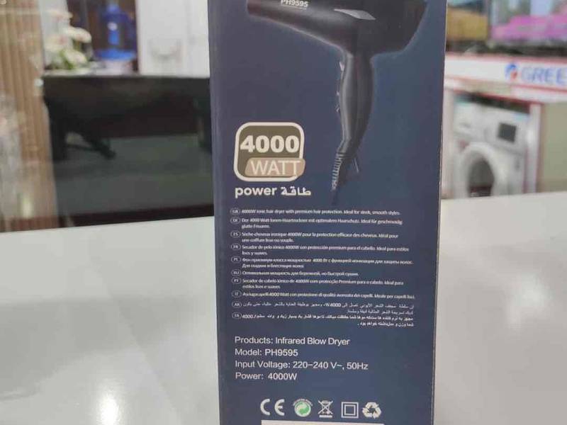 سشوار حرفه ای فیلیپس مدل PH9595 با داشتن توان 4000 وات قدرت و موتور AC خیلی سریع موها رو خشک کرده و به آنها حالت می دهد، و وز شدن موها ممانعت خواهد کرد. در ضمن توجه داشته باشید موتور سشوارهای خانگی اصطلاحا موتور DC و موتور سشوارهای حرفهای که بیشتر به کار آرایشگاهها میآید موتور AC هست. موقع خرید بە این قابلیت دقت کنید