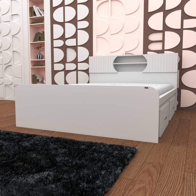 جنس نئوپان ملامینه جنس درب باکس کلگی بالا وکیوم دو درب کمدی به صورت آرام بند کشوها به صورت چرخدار کفی تخت سه تکه از جنس نئوپان خام است. کالا فاقد تشک می باشد بسته بندی به صورت چهار آیتمی است.
