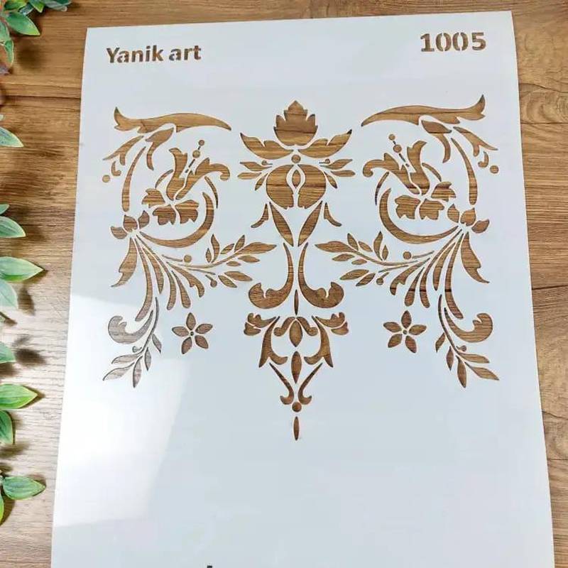 تقارن و زیبایی در طراحی با شابلون نقش قرینه یانیک آرت. ایدهآل برای تزئینات کناری مبلمان یا لبهی میز. شابلون تخصصی Yanik Art.
