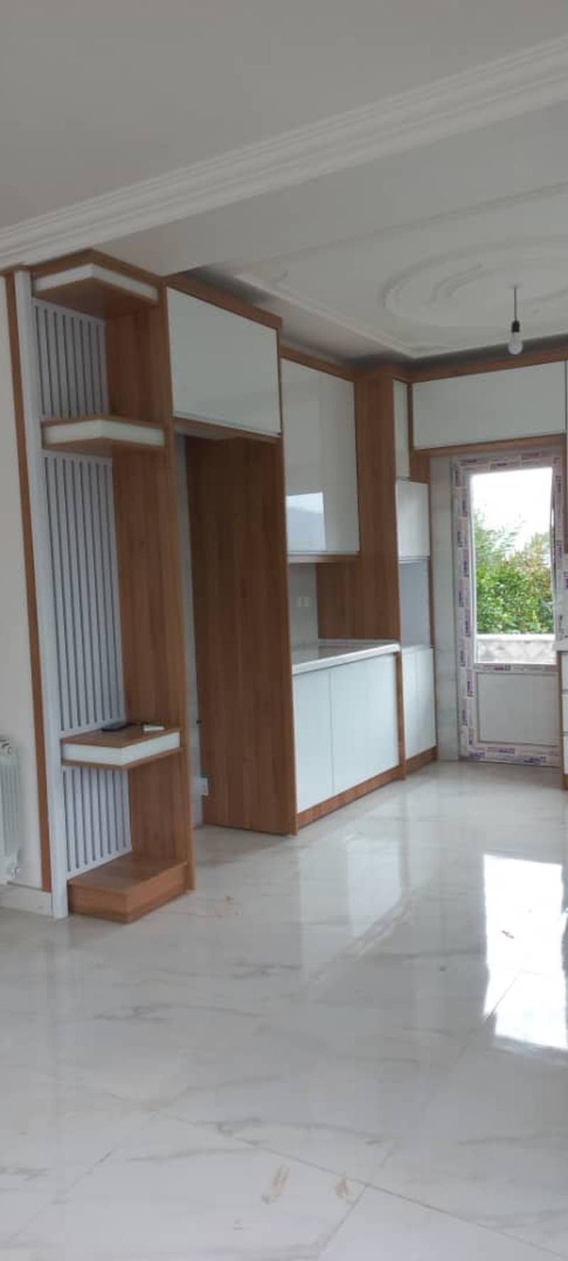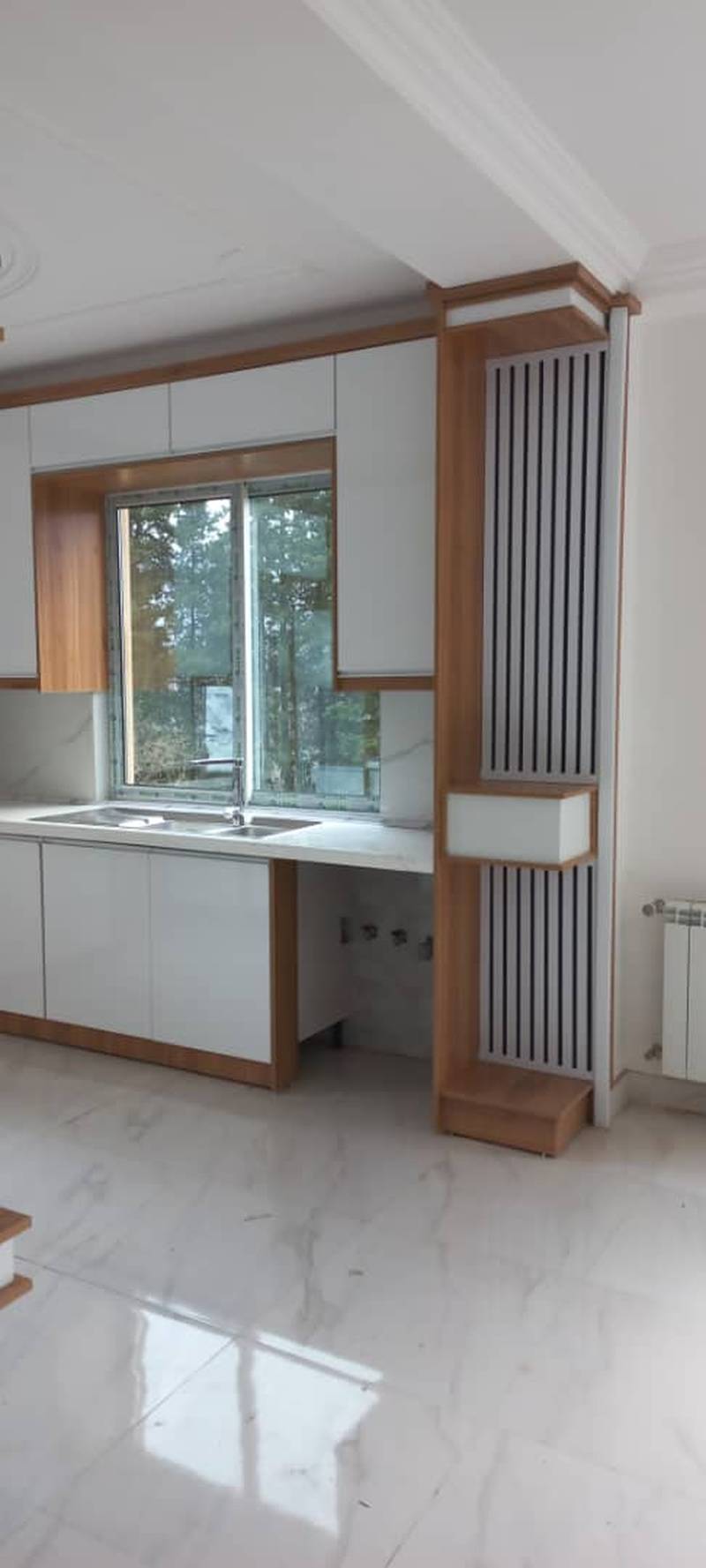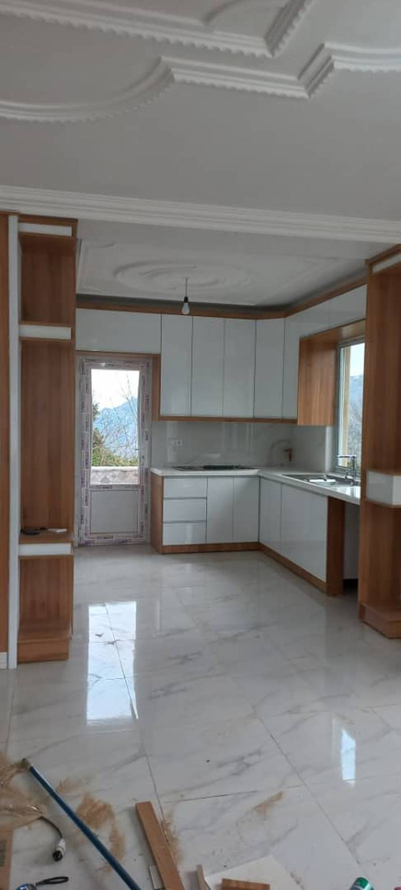 ساخت کابینت ترکیبی ام دی اف و های گلاس در دو رنگ