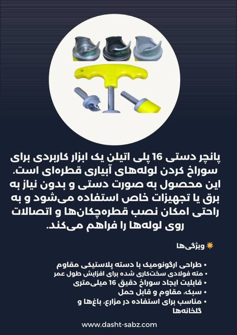 پانچر دستی 16 پلی اتیلن یک ابزار کاربردی برای سوراخ کردن لوله های آبیاری قطره ای است.