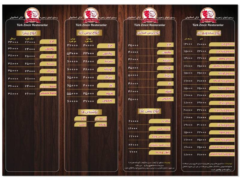 منو جدید فست فود دی دنر
