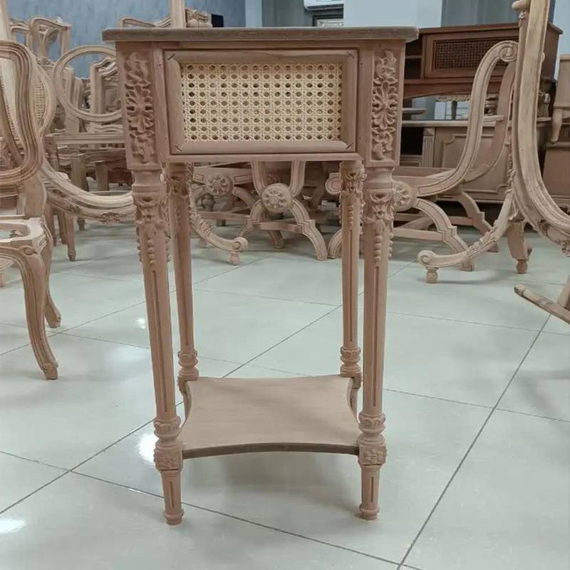 🪵 پایههای خراطیشده با ظرافت بالا ساخته شدهاند و صفحهی رویی با بافت حصیری، جلوهای طبیعی و هنری ایجاد میکند. این استند میتواند برای گلدان، وسایل دکوری، چراغ خواب یا حتی میز کنار مبلی استفاده شود.