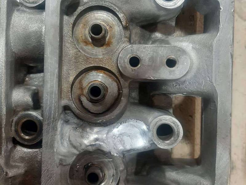 ترک خوردن روآ از پشت و جوشکاری ترک.بعد جوشکاری تست شد و کاملا سالم بود.در واقع سرسیلندر باطل تبدیل به سرسیلندر سالم و آماده بستن روی ماشین شد.