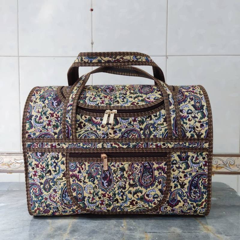 کیف ترمه استخری یک محصول منحصر به فرد و هنرمندانه است که با ظرافت تمام در شهر تاریخی یزد تولید می شود. این کیف زیبا با ابعاد ۲۴ در ۴۲ سانتی متر و ارتفاع ۳۳ سانتی متر، نمونه ای بی نظیر از ترکیب هنر سنتی و کاربردی مدرن است.