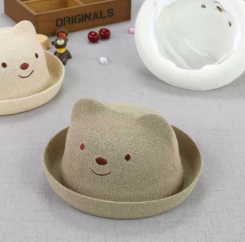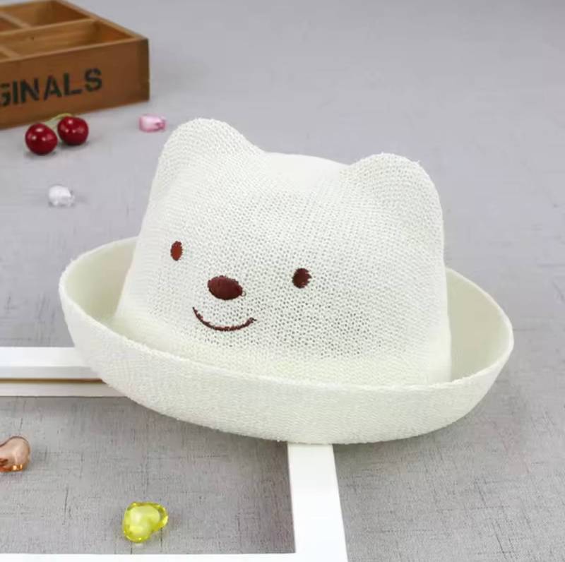 کلاه بافت خرسی با طراحی سهبعدی گوشدار و صورت خندان، مناسب فصل بهار و تابستان!