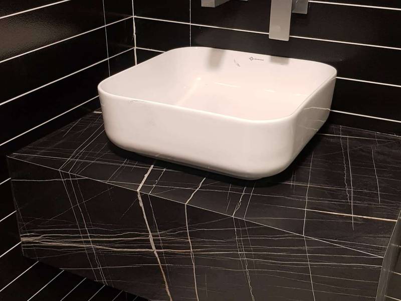 اجرای بی نقص وبسیار زیبا روشویی بامتریال اس پی ای بافینیش مات.