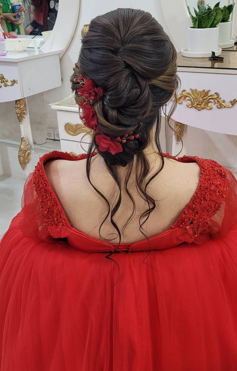شنیون شلخته اروپایی در سالن زیبایی ملکه، طراحی زیبا و طبیعی برای موهایی شیک و بیدردسر. این سبک شنیون، با موهای آشفته و بینظم، ظاهری مدرن و اروپایی ایجاد میکند که برای مجالس و عروسیها عالی است. برای رزرو و مشاوره با ما تماس بگیرید.