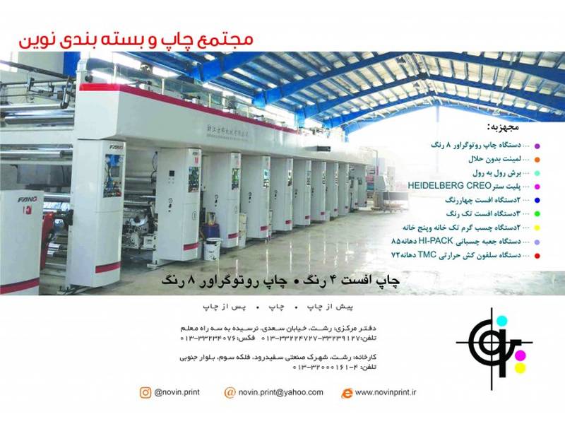 لمینت و بسته بندی تمامی محصولات بصورت کاملا حرفه ای با پیشرفته ترین ماشین های چاپ روز دنیا