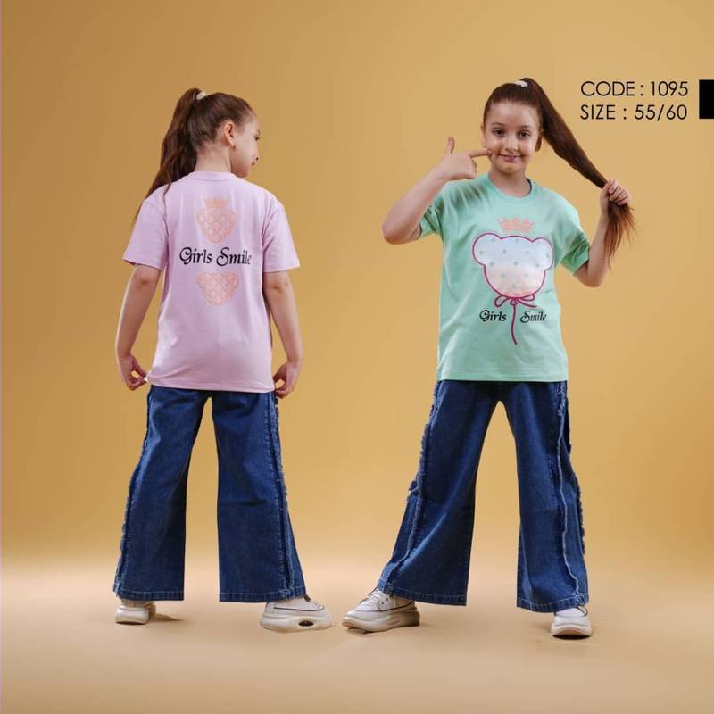 ست تیشرت شلوار لی بگ دمپا ریش دخترانه