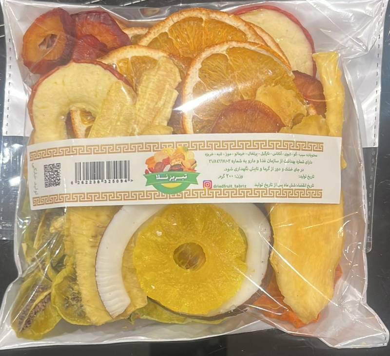 این بسته ۲۰۰ گرمی یک گزینه عالی برای استفاده روزانه، میانوعده محل کار، تغذیه کودکان، ورزشکاران، پذیرایی مهمان و حتی هدیه سلامتیمحور به عزیزان است. ترکیب میوههایی مانند سیب خشک، کیوی، موز، پرتقال، هلو، خرمالو، توتفرنگی، نارنگی، آلو و آناناس خشک در این بسته، باعث شده که طعمی متنوع، شیرین، ترش و دلچسب را در یک پک تجربه کنید.