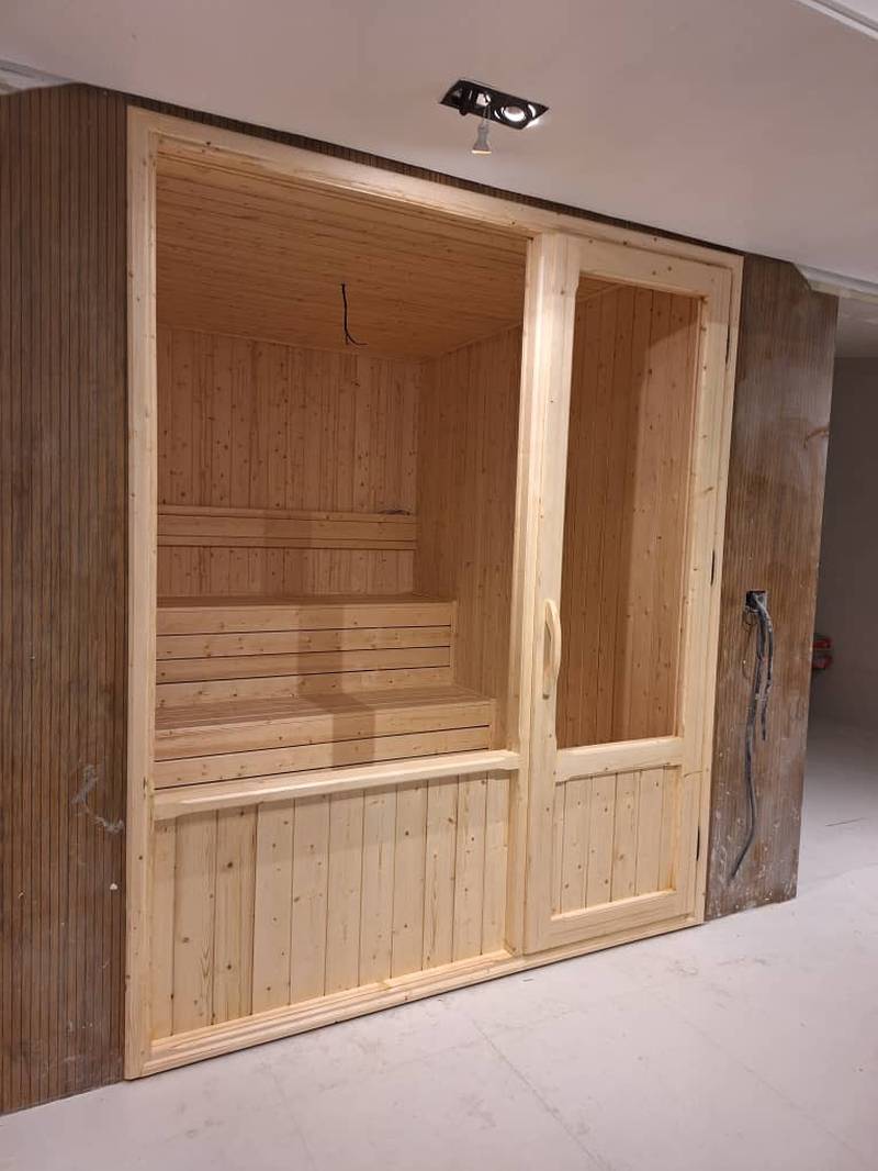 طراحی و اجرای سونا با سکو دو پله | افزایش راحتی و بهرهوری در فضای سونا