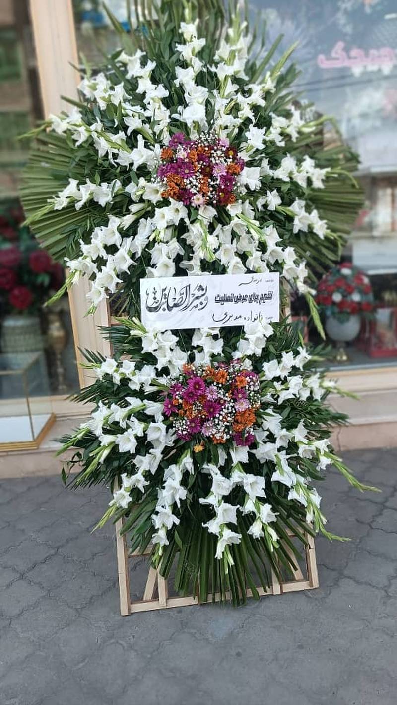 تاج گل تسلیت با طراحی منحصر به فرد و مناسب برای مراسم ترحیم
