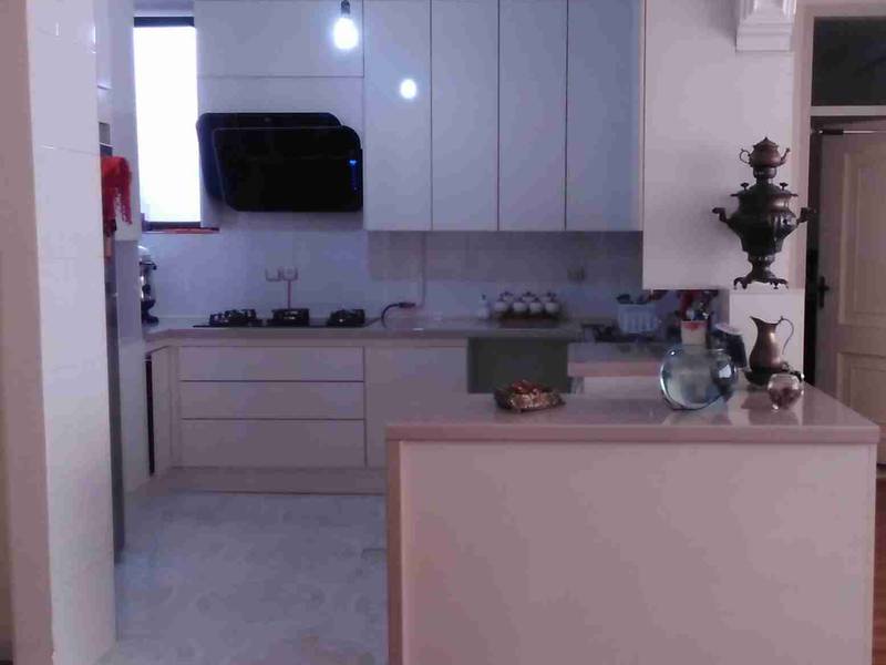 کابینت آشپزخانه با متریال ام دی اف رنگ سفید متالیک با یراق الات درجه یک با کارایی بالا برای مصرف کننده