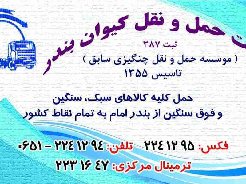 حمل کلیه کالاهای سبک و فوق سنگین از بندر امام به سراسر نقاط کشور