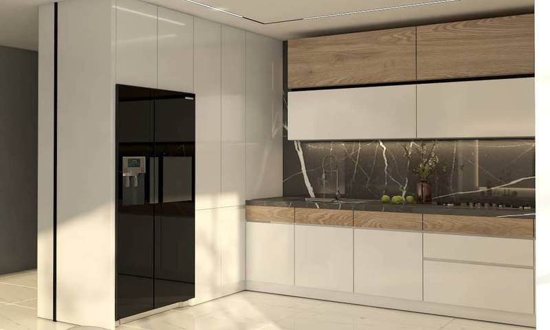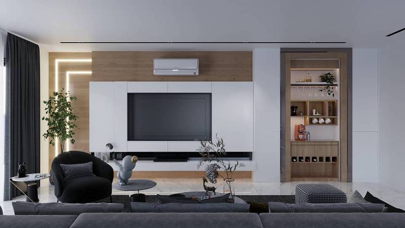 طراحی و اجرای دکوراسیون داخلی مدرن در پروژه آقای رضایی، واقع در گناوه، با استفاده از ترکیب خاص امدیاف با روکش چوب و رنگ سفید الکی، فضایی زیبا و منحصربهفرد ایجاد کرده است.