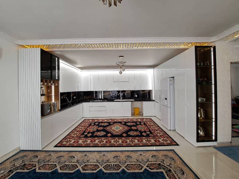 ظاهری براق و لوکس که عمق و جلوه ویژه ای به فضای آشپزخانه می بخشد