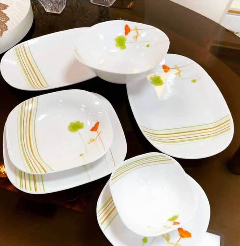 سرویس چینی دسینی ۲۷ پارچ دارای ۲ دیس، ۱عدد کاسه سایز بزرگ، ۶عدد میوه خوری، ۶عدد برنج خوری، ۶ عدد کاسه سالاد خوری، ۶عدد خورشت خوری