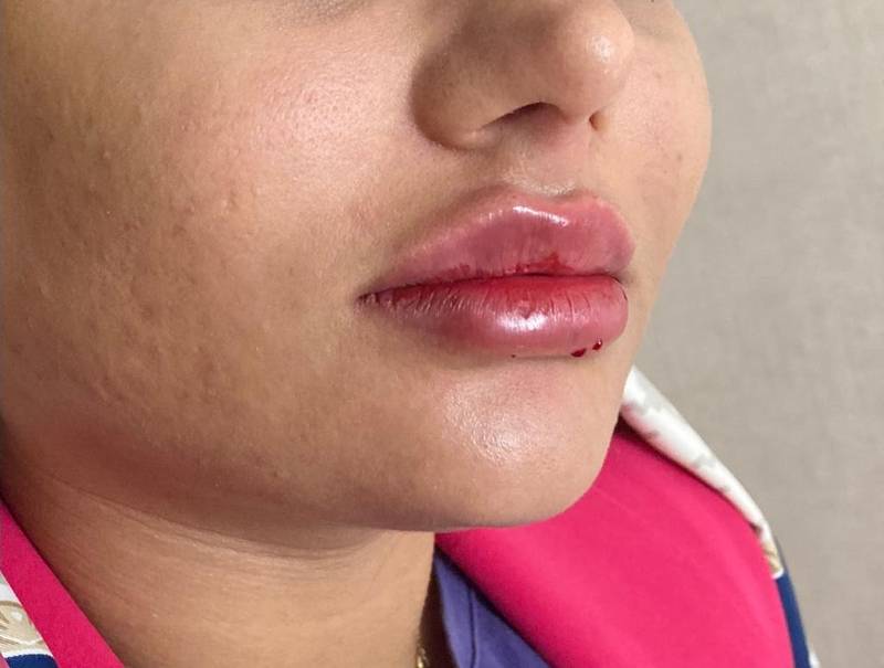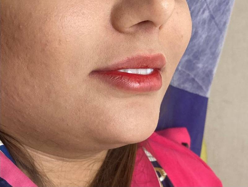 ژل لب با برند پرفکتای فرانسه بدون کبودی و تو م بلافاصله بعد از تزریق در کلینیک زیبایی ری نیو در یزد می باشد.