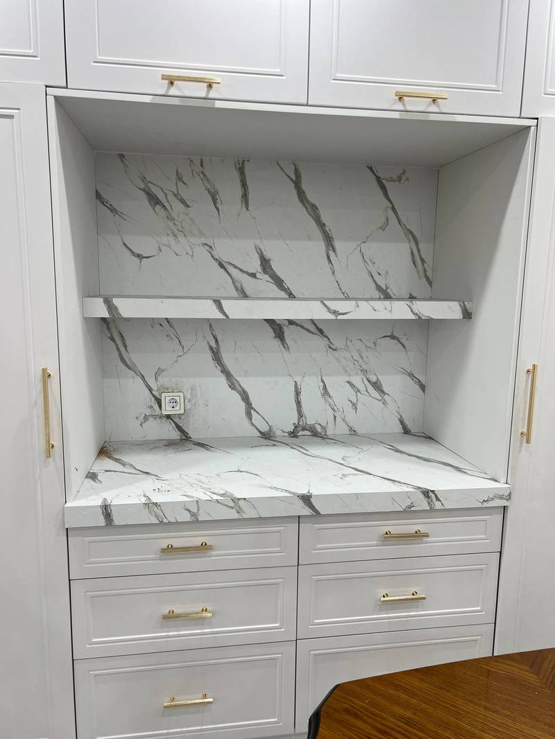 طراحی و اجرای صفحه و شلف بین کابینت SPL با استفاده از متریال باکیفیت، جلوهای مدرن و جذاب به آشپزخانه شما میبخشد. این صفحات علاوه بر زیبایی و دوام بالا، به راحتی قابل نظافت و نگهداری هستند.