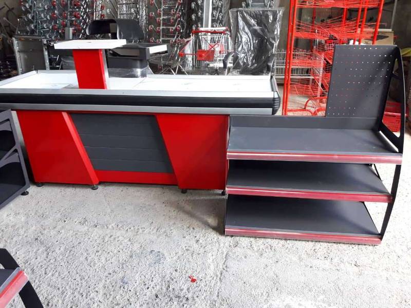 میز چک اوت با نام های میز صندوق فروشگاهی ، میز پیشخوان فروشگاه و میز فروشگاهی تولید میگردد . میز فروشگاهی از جنس ورق آهن ، پی وی سی ، آلومینیوم ، استیل گندمی ضد خش و رنگ های الکتروستاتیک می باشد . مهمترین نکته در طراحی و تولید و کیفیت این میز ، استفاده از ورق آهن با ضخامت بالا و رنگ های با کیفیت و برند الکتروستاتیک می باشد . زیرا ورق آهن با ضخامت بالا مانع از خم شوندگی و آسیب دیدن میز در طول زمان و جابجایی می شود . همچنین استفاده از رنگ های کوره ای با کیفیت بالا باعث می گردد تا ضد خش و ضد زنگ باشد. و طول عمر میز بیشتر می شود و برای محیط های مرطوب به راحتی مورد استفاده قرار میگیرد.