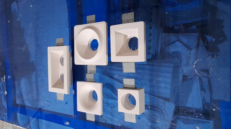 قاب هالوژن گچی مقاوم، محصول جدید مپ دکور است که توسط پیچ به کناف سقف متصل می شود و با بتونه کناف یکپارچه سازی میشود، و مثل قاب های پلاستیکی یا فلزی بیرون زدی ندارد یکپارچه بودن و رنگ پذیر بودن و هندسه سه بعدی فرو رفته آن زیبایی بصری بی نظیری به سقف می دهد و از ایجاد خیرگی نور هالوژن برای چشم بیننده جلوگیری می کند.