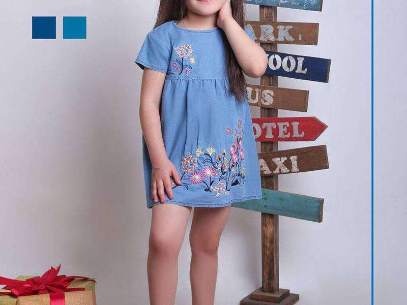 سارافون دخترانه جین گلدوزی آبی در یزد