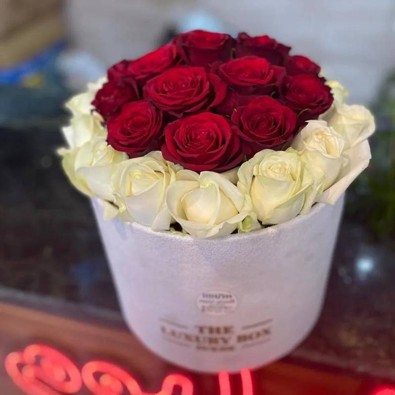 🔹 باکس گل نامزدی با ترکیب گلهای طبیعی و مصنوعی