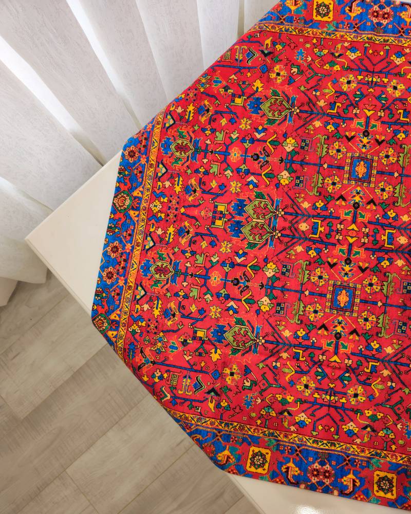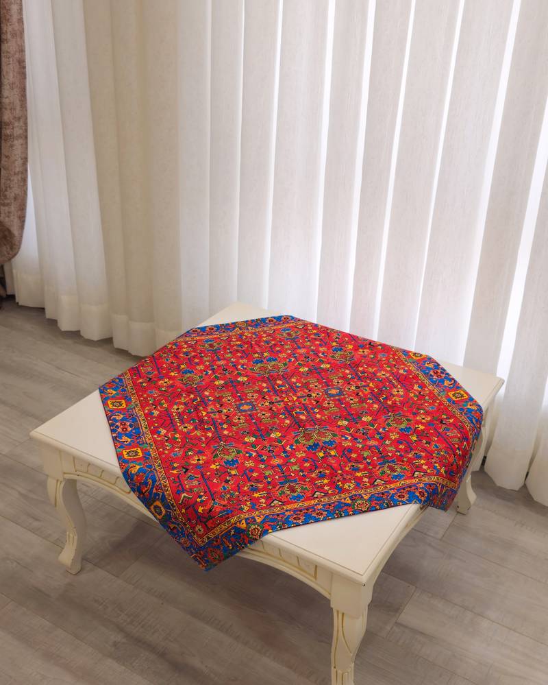 فروش با بهترین قیمت رومیزی مخمل کوب قرمز ست با کوسن و تک در طرح و رنگ و سایز متنوع همچنین قابل شستشو در گالری سنتی معینی در انزلی می باشد.