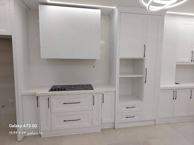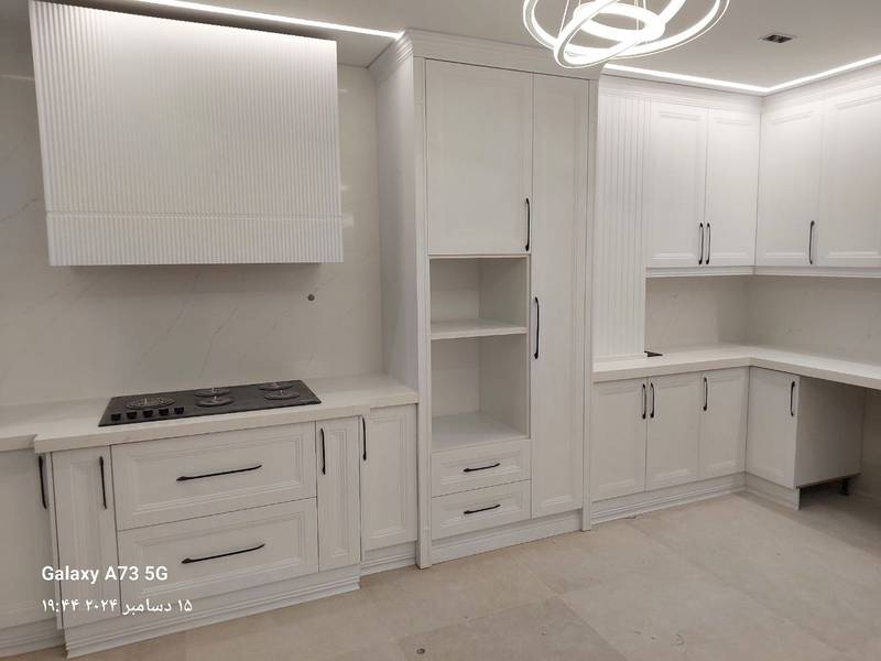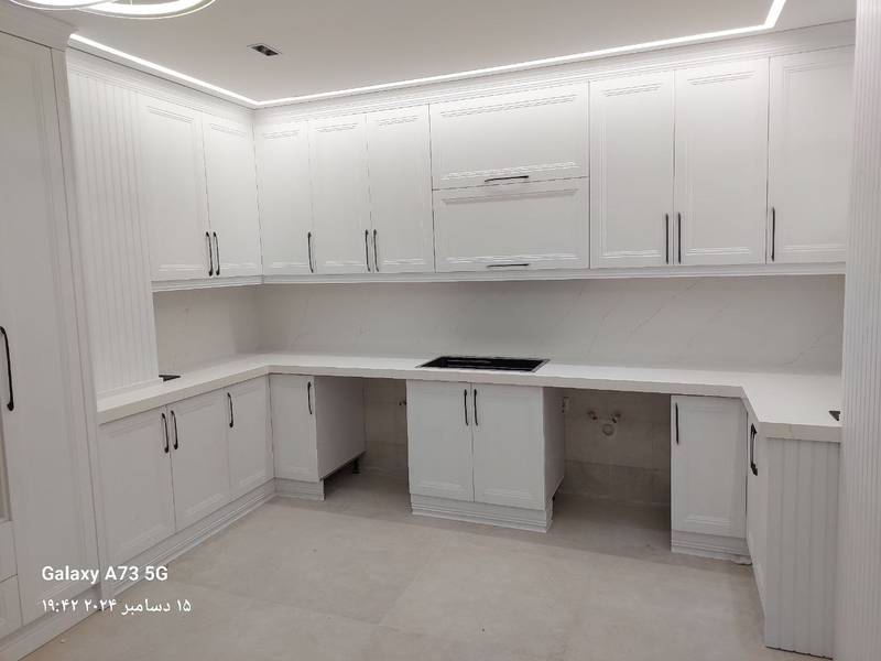 اجرای صفحات کوارتز برند توتم سفید رگه طوسی با بین کابینتی برای مشتری گرامی آقای جعفری از جهانشهر کرج.