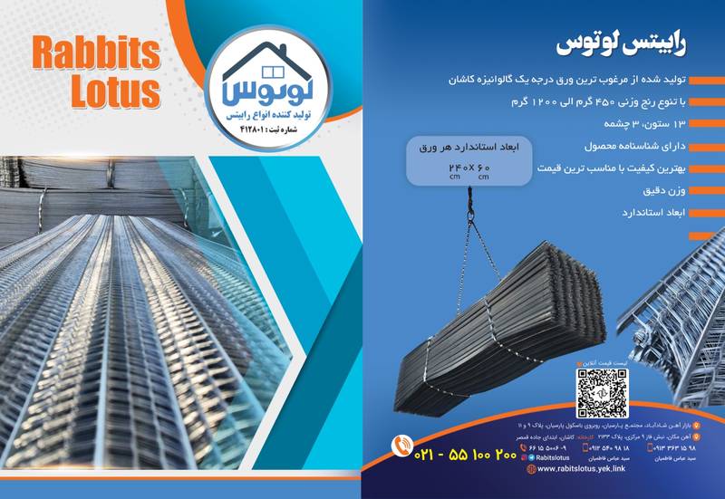 شرکت ما در زمینه تولید انواع رابیتس از ورق درجه یک گالوانیزه کاشان و با تنوع ۵۰۰ الی ۱۱۰۰ گرم فعالیت دارد.